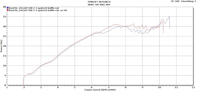 the dyno with one snorkel fitted and without the baffle. It felt a bit